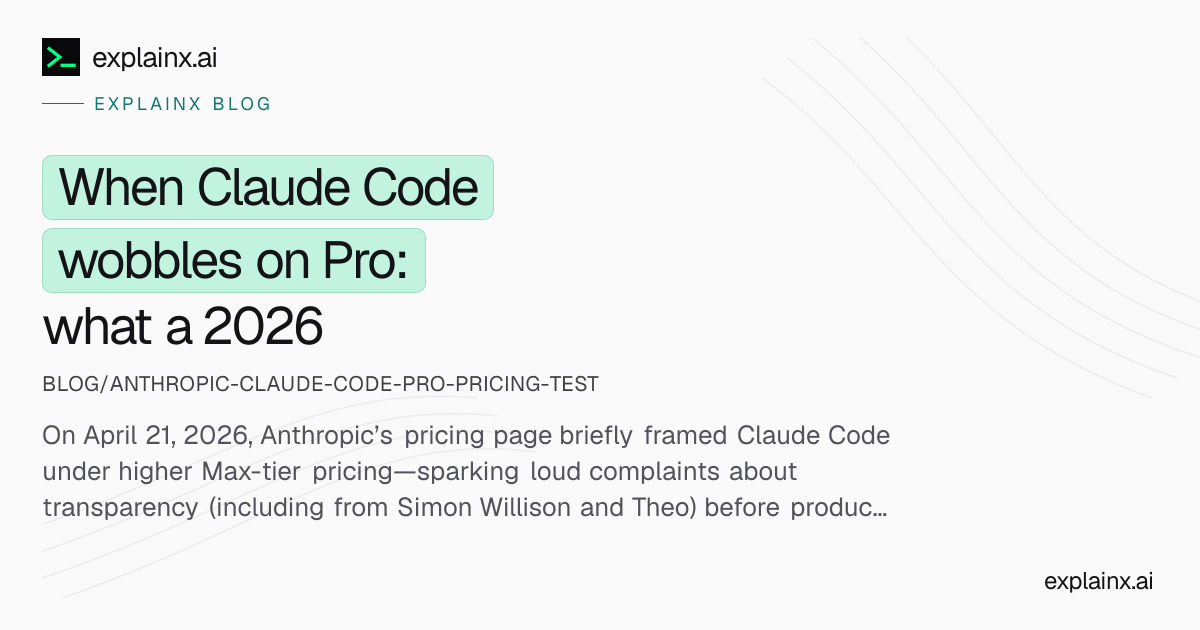 April 21, 2026 was a sharp, same-day stress test in public for how much agentic coding is “supposed to cost”—and how clearly vendors must say it. On that morning, Anthropic’s pricing page led many readers to conclude that Claude Code—the repo-wide agent that reads, edits, and runs commands—had been moved off the $20 Pro tier and into the ~$100 Max column. Developers and commentators on X reacted fast, with high-profile voices such as Simon Willison and Theo Browne among those calling out transparency and trust. By evening, Anthropic had reverted the presentation; Pro subscribers were again clearly in for Claude Code under the public copy. Trade coverage (for example The Register and The New Stack) captured the test → clarification → rollback arc. Always verify the live pricing page: plan matrices can change again.