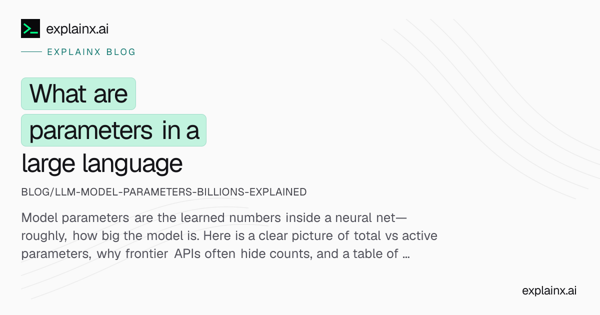 Parameters (often billions of parameters, or B / bn) are the usual shorthand for how big a neural language model is in terms of learned weights. They are not the same as tokens (text units) and not the same as context length (how much text fits in one request)—but all three get compared when people discuss GPT-class, Claude-class, Gemini-class, and open weights like Llama.