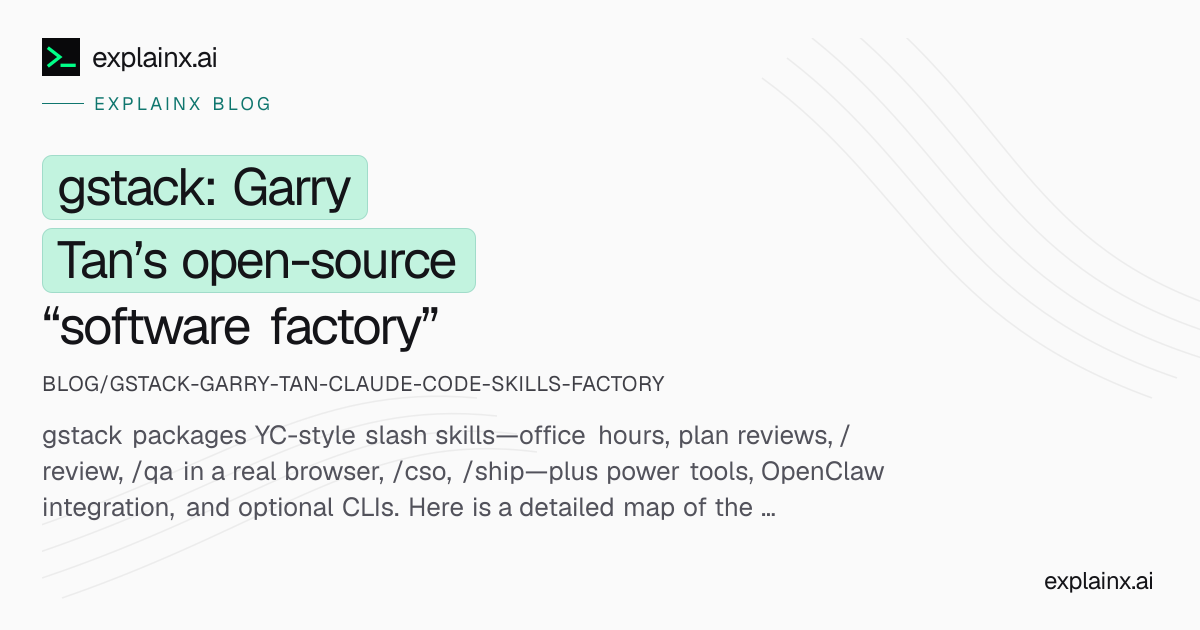 This ExplainX note is a map, not a replacement for upstream docs. github.com/garrytan/gstack is canonical for install commands, slash names, and per-release features (for example the v0.19 CLIs mentioned in the README). Browse gstack on ExplainX: explainx.ai/skills/gstack (pre-filtered skills registry view).