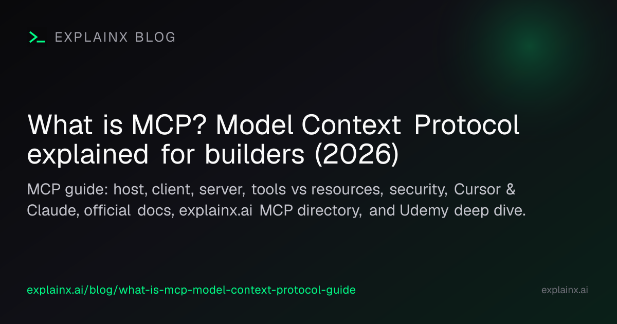 MCP (Model Context Protocol) is the open standard that lets AI applications talk to real systems: databases, SaaS APIs, browsers, files, internal services—without every vendor inventing a one-off integration for every model. This guide is a 2026-oriented primer: architecture, primitives, how it differs from agent skills, security reality checks, and links to official docs, explainx.ai, and a hands-on course.